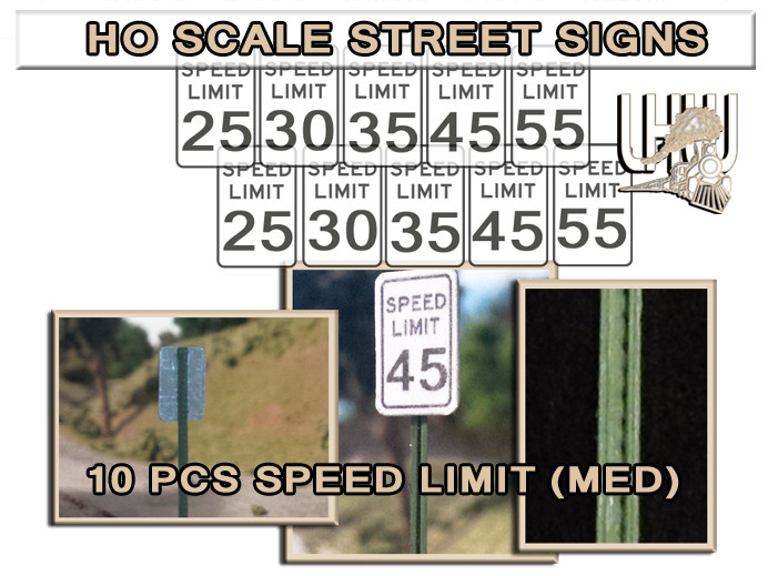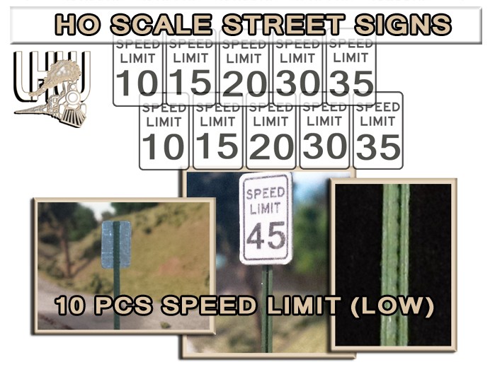 10 pcs, HO Scale Signs Speed Limit Pack 1.1