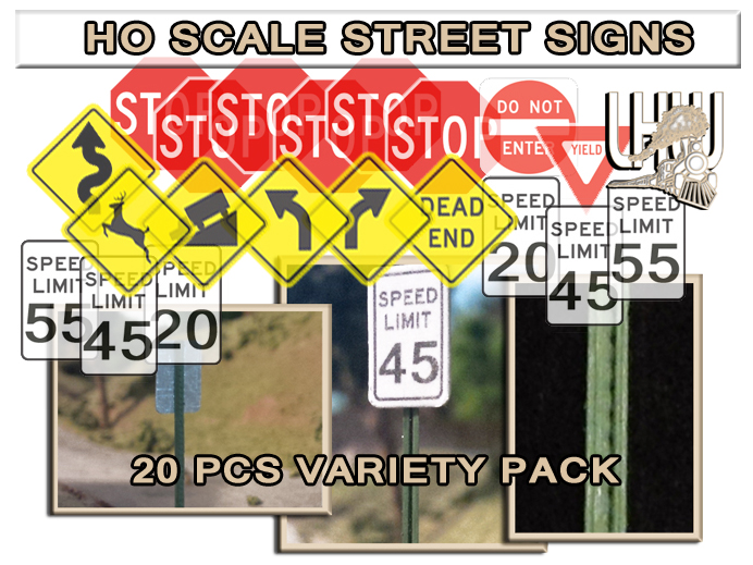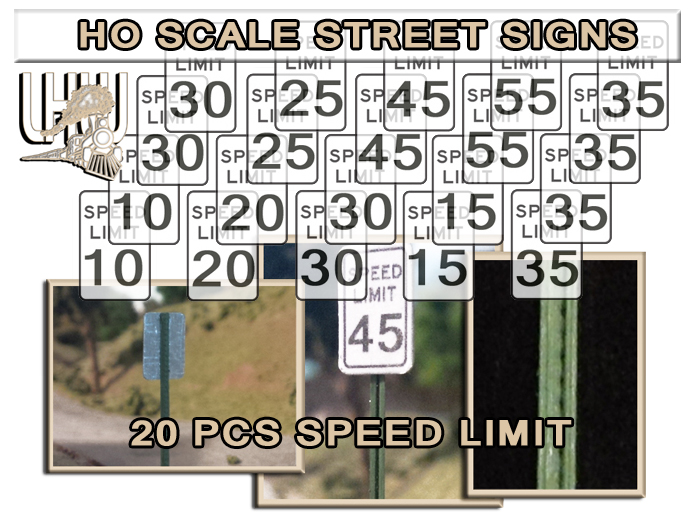20 pcs, HO Scale Signs Speed Limit Pack 1