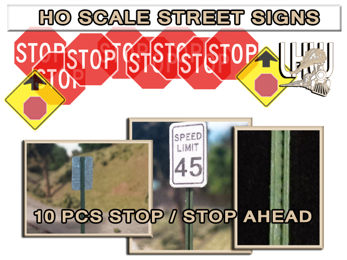 10 pcs, HO Scale Signs Stop Ahead Pack 1.1