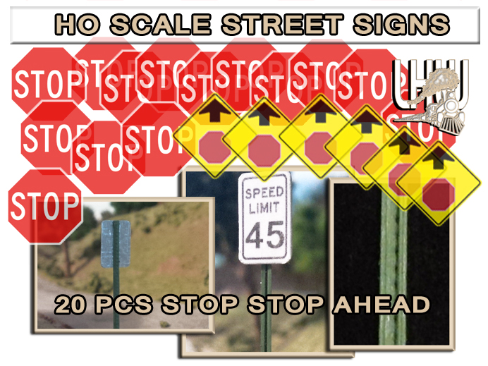 20 pcs, HO Scale Signs Stop Ahead Pack 1