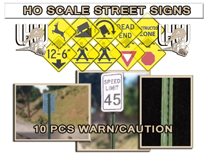 10 pcs, HO Scale Signs Warning/Caution Pack 1.1